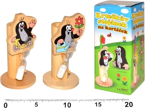Podarite otrokom zabavno in stilsko čiščenje zob z lesenim nosilcem za zobno ščetko. Ta kakovosten izdelek z priljubljenimi figuricami iz igre Krtek spremeni rutinsko nalogo v veselo dejavnost. Zaradi priloženih časovnih peščenih ur se otroci naučijo pravilno meriti dolžino ščetkanja. Vesel dizajn spodbuja vaše malčke k redni higieni.