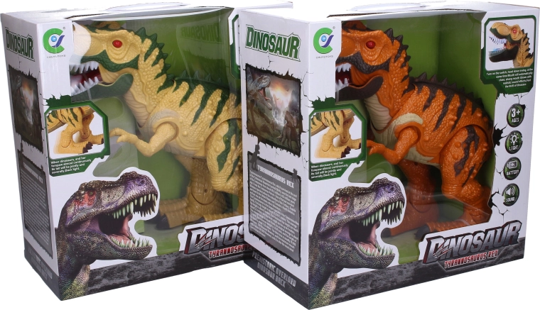 - Gibanje in učinki – dinozaver hodi, odpira čeljust in oddaja zvoke.