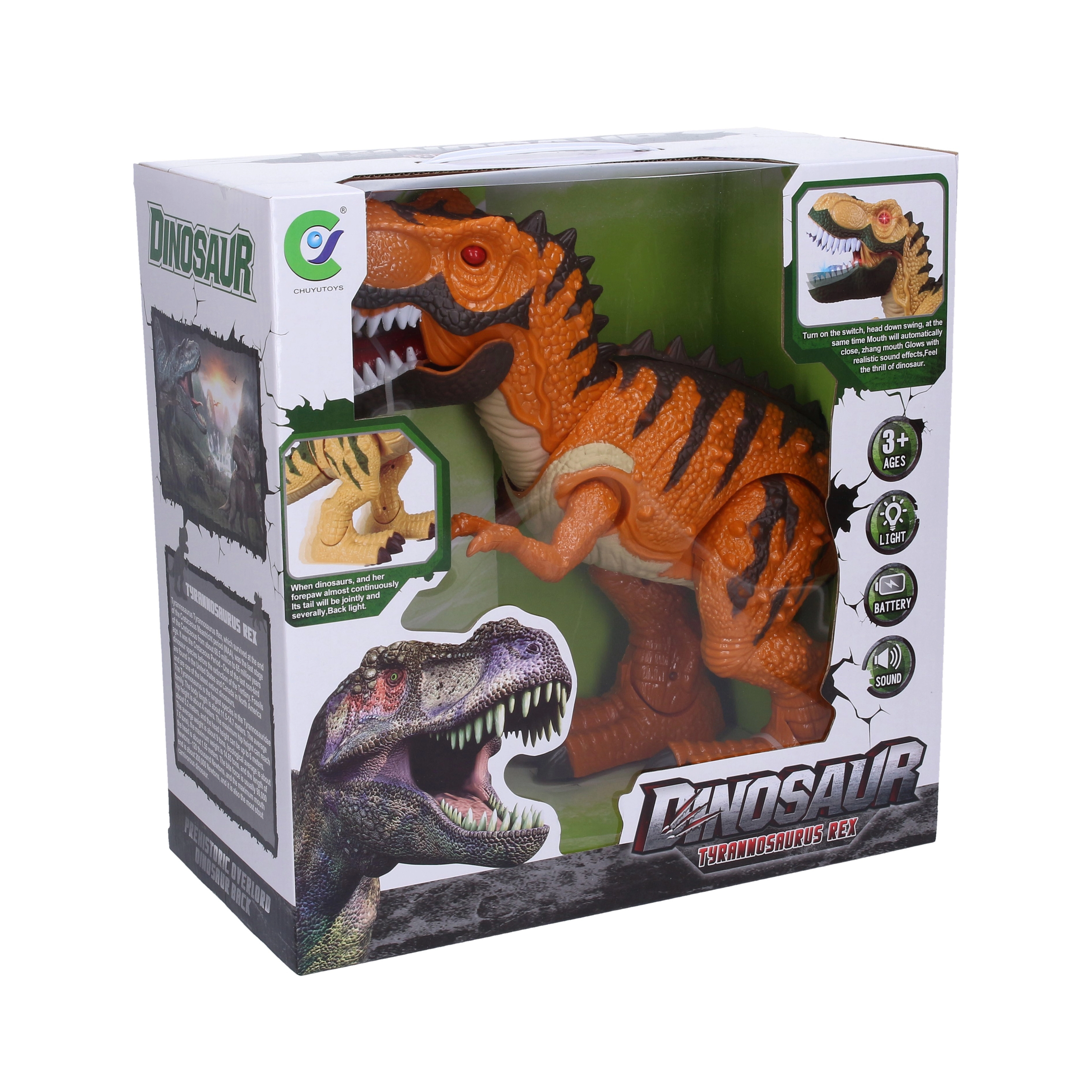 Prebudite domišljijo svojih otrok z impresivnim dinozavrom, ki se resnično premika. Zaradi kombinacije svetlečih oči, realistično zvenečega rjovenja in odpirajočih se čeljusti deluje igra še bolj pristno. Robustna izdelava zagotavlja veliko zabave in pustolovščin v otroški sobi.