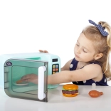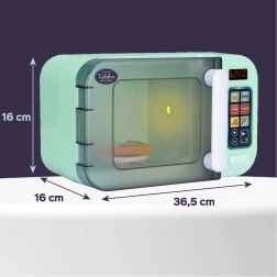 Okraskajte kuhinjico svojega malega kuharja z luksuzno otroško mikrovalovno pečico z zaslonom na dotik. Ta interaktivna mikrovalovka oddaja zvoke kot prava in sveti. Programiranje vključuje vrtenje krožnika s posnetkom jedi v notranjosti mikrovalovne pečice.
