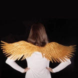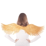 Ustvarite eleganten angelski videz s temi zlatimi krili. Idealna za kostume in tematske zabave. Krila imajo dimenzijo približno 96 cm, ko so razprta. Primerno za osebe od 14 let.