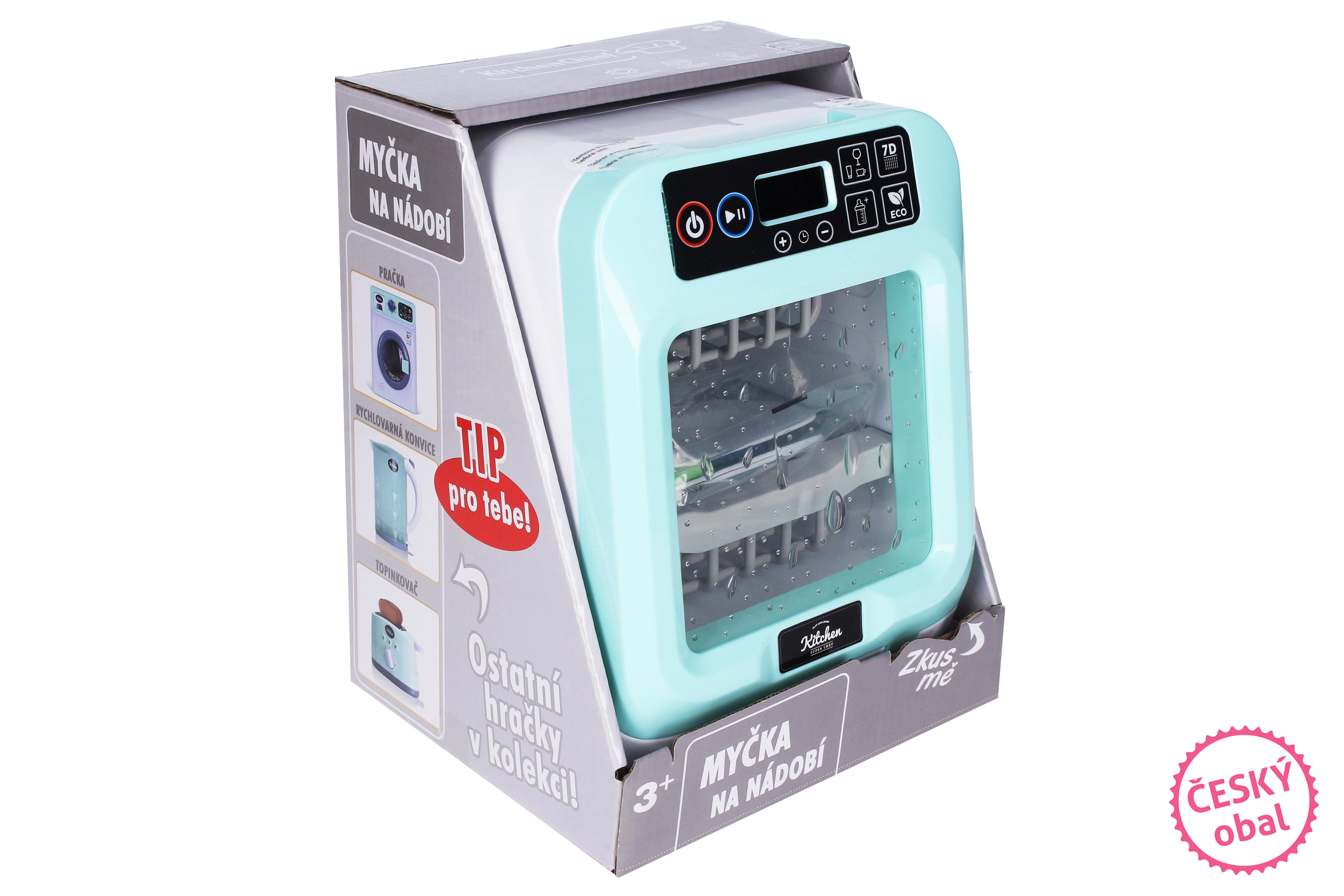 Ta realistični otroški pomivalni stroj pomaga razvijati domišljijo in fino motoriko. Zahvaljujoč svetlobnim in zvočnim učinkom spominja na pravi aparat in motivira otroke k posnemanju odraslih. Preprosto upravljanje in pregledni programi ga delajo odlično izbiro za vsakodnevno igro.