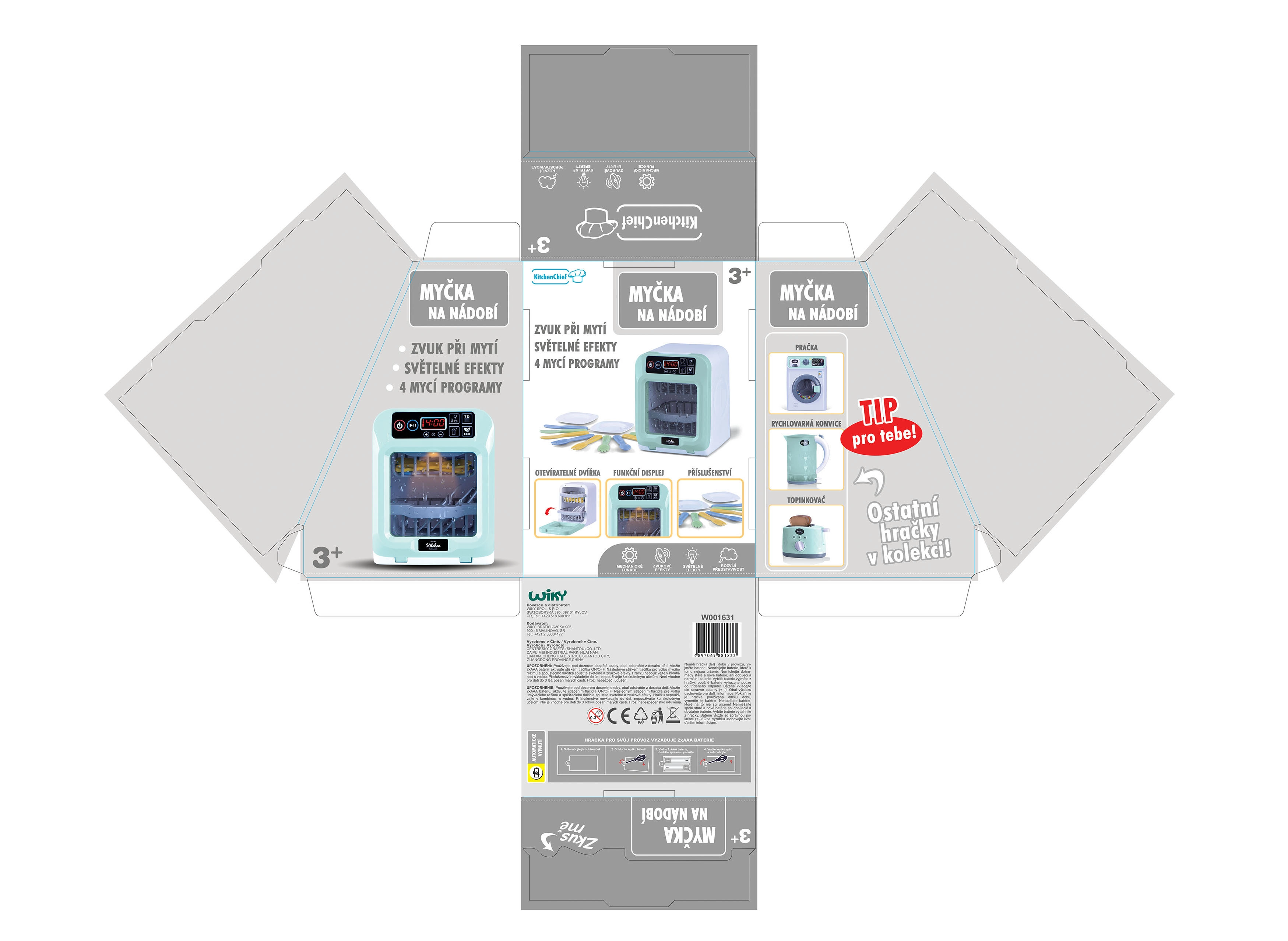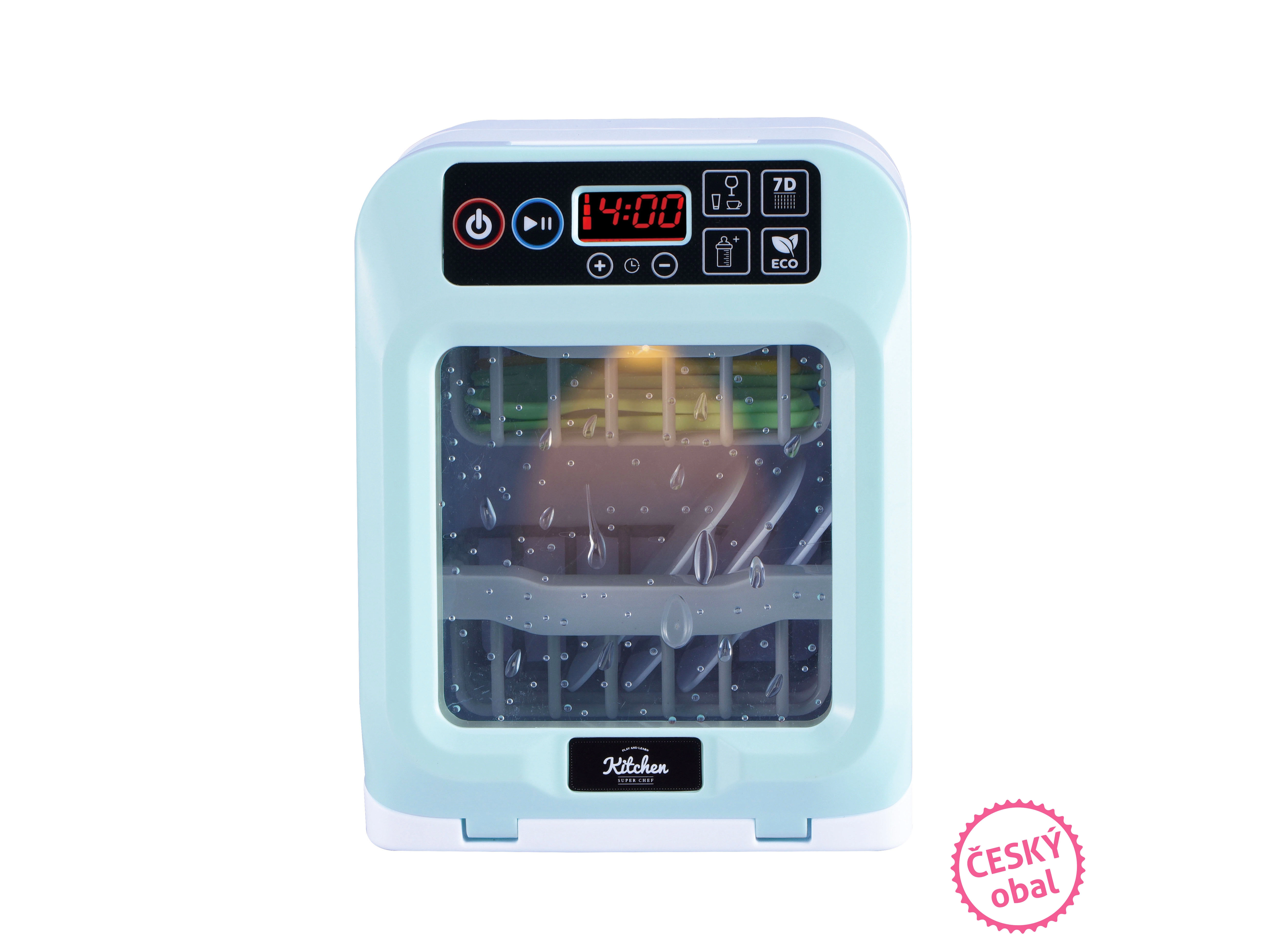 Izberi med 4 programi pomivanja ali nastavi svoj čas glede na potrebe. Pomivalni stroj je pripravljen za uporabo takoj po razpakiranju – 2× AAA bateriji sta priloženi. Popolno darilo, ki zabava in uči reda v kuhinji.