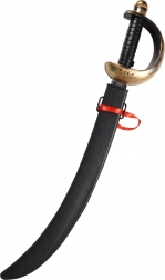 Črno rezilo in zaščitna prevleka z dekorativnimi elementi za avtentičen videz piratske šable.