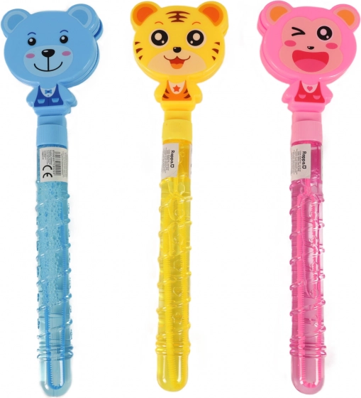 Praktična pihalka, vgrajena v pokrovček, je vedno pri roki, barvni miks (modra, rožnata, rumena) z motivi medvedka, tigra in opičke pa razveseli vsakega malega mojstra mehurčkov. Izdelek je primeren od 3 let. Za enostaven nakup in dopolnitev zalog ponujamo prodajo le v celotnem pakiranju 24 kosov.