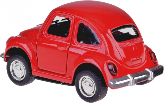 Eleganten rdeč kovinski avtomobilček v slogu klasičnega hrošča bo navdušil male voznike in zbiratelje. Ponuja odpirajoča se vrata, svetlobne učinke, zvoke in preprosto vožnjo na pull-back (poteg nazaj). Zahvaljujoč gumijastim kolesom odlično vozi, kompaktne mere pa so idealne za na pot. Dobavljeno v darilni embalaži.