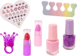 Dva laka za nohte, nalepke, separator, čopič in mini šminki podpirajo fino motoriko in domišljijo pri varni igri.