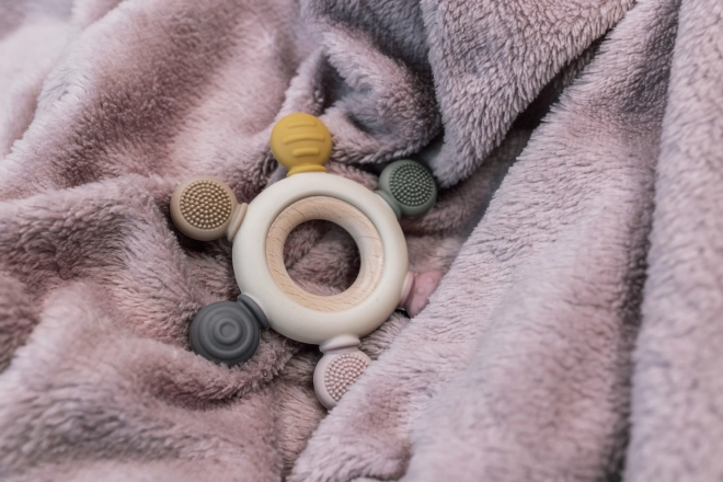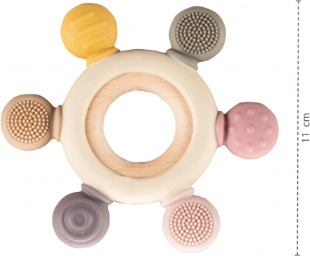 Različne barvite teksture na grizalu pomagajo umiriti razdražene dlesni in otrokom nudijo zabavo.