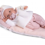 Lutka Antonio Juan Bimba je popoln spremljevalec za vašega otroka. Njeno mehko tekstilno telo in realistične uspavane oči dodajajo igri avtentičnost. Ta prizanesljiva lutka je tudi interaktivna, saj reagira na magnetni dudelj in po izvleku oddaja zvoke, kot so "mama" in "papa", ter realistično otroško jokanje, ki se pomiri z vrnitvijo dudlja: