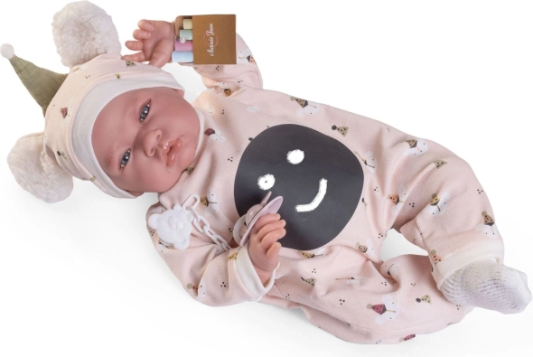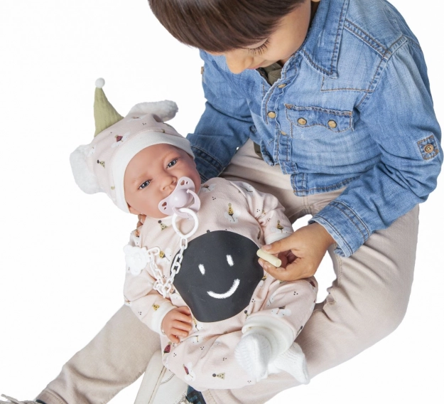 Ročno izdelana španska punčka blagovne znamke Antonio Juan prinaša verodostojno izdelane podrobnosti obraza in sklepne okončine, ki omogočajo različne položaje, vključno s samostojnim sedenjem. Njeno mehko tekstilno telo zagotavlja prijeten objem in udobje pri igri.