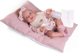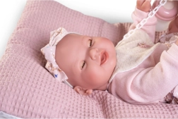Odkrijte čar ročno izdelane španske lutke, ki ponuja življenjsko resnične detajle, vključno s prikupnimi gubami in drugimi dojenčkovimi podrobnostmi. Lutka je izdelana iz mehkega vinila, kar daje prijeten občutek na dotik. Vsaka lutka je oblečena v organski bombaž, ki je okolju prijazen in brez kemične obdelave, kar potrjuje zavezanost blagovne znamke Antonio Juan k trajnosti okolja.