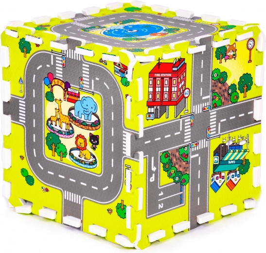 Ta penasta igralna podloga z barvitim motivom mesta, cest in stavb ustvarja navdihujoč prostor za domišljijo, učenje in razvoj motorike. Otrokom nudi udoben in mehak prostor za igro, plazenje in prve korake, hkrati pa ščiti pred mrazom s tal in blaži udarce ob padcih.