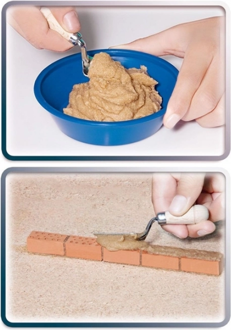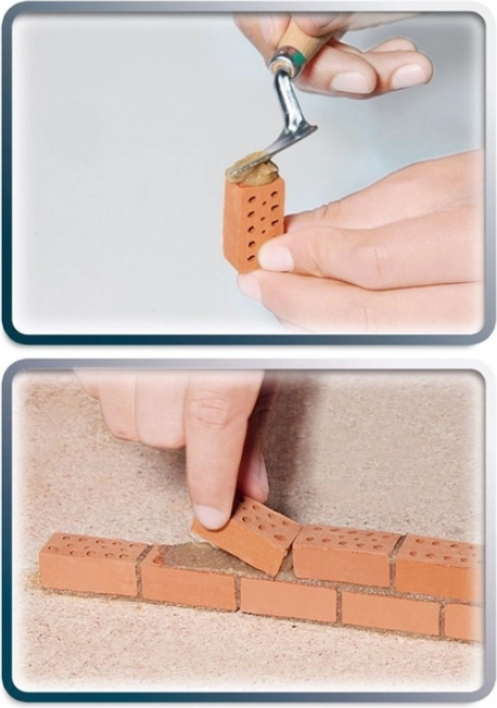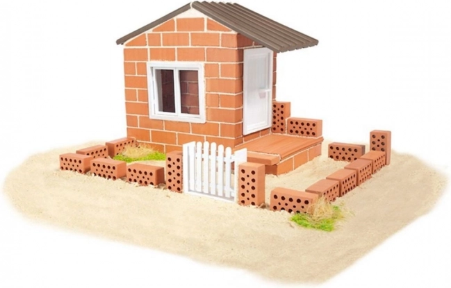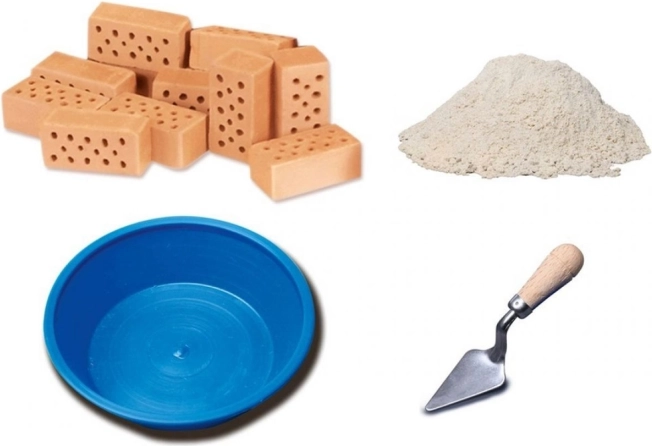 Teifoc Hiša Andres uporablja prave mini opeke in koruzni malt, kar otrokom omogoča avtentično izkušnjo prave gradnje.
