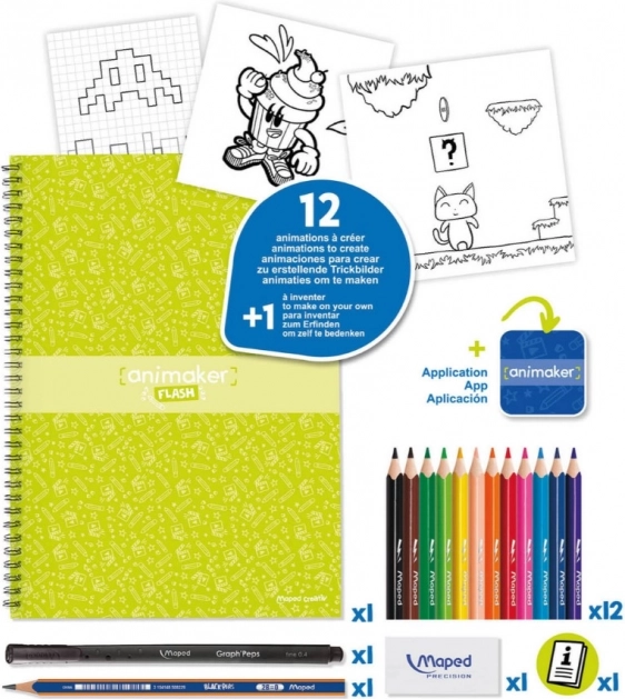 Maped Creativ ponuja komplet Animaker Flash, ki omogoča ustvariti 12 mini risanih filmov po pripravljeni predlogi ali po lastni neomejeni zamisli.