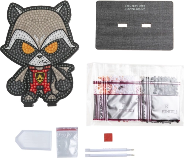 S tem čudovitim ustvarjalnim setom lahko oboževalci Marvela ustvarijo svetlečo sliko z Rocketom iz filmske serije Varuhi galaksije. Set vsebuje vse potrebno za ustvarjanje slike dimenzij 12 x 19 x 1,5 cm, kar jo naredi idealno za razvoj fine motorike pri otrocih.