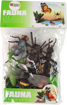 Vključuje pajka, čebelo, muho, ščurka, mravljo in bogomolko – idealno za tematske igre, projekte ter pouk biologije in naravoslovja.