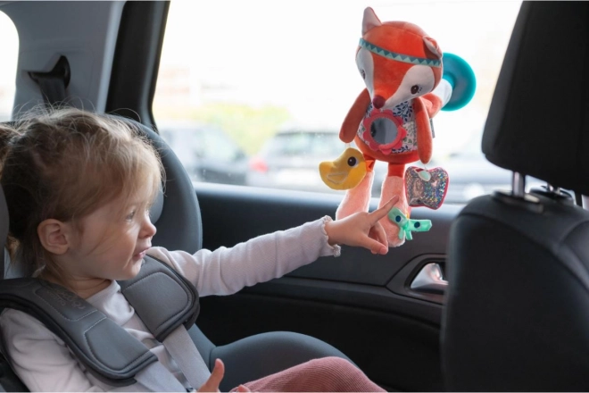 Potovanje bo bolj zabavno s plišasto igračo lisica Alice od Lilliputiens, ki se zahvaljujoč prisesku zlahka pritrdi na okno. Ta igrača ponuja vrsto interaktivnih aktivnosti za najmlajše, ki razvijajo njihovo fino motoriko in čutno zaznavanje.