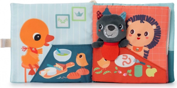 Zabavna tekstilna knjižica za najmlajše predstavlja zgodbo, v kateri volk Ludvik odkriva svet okusov in se uči jesti z žlico. Zahvaljujoč prstni lutki si lahko otroci zgodbo oživijo, razvijajo fino motoriko in uživajo v interaktivni igri z barvitimi ilustracijami in tipnimi elementi. Knjižica ima tudi mesto za fotografijo vašega malčka in jo je mogoče prati pri 30 °C.