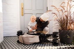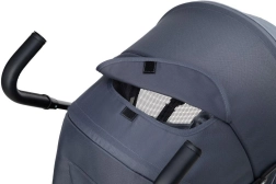Za maksimalno udobje sta tu nastavljivo naslonjalo in nastavljiva opora za noge. Praktične podrobnosti, kot so možnost odpiranja varovala le na eni strani, odsevni elementi za boljšo vidljivost ter ročaj za prenašanje zloženega vozička, olajšajo vsakdan. Del paketa je tudi bogata oprema – torba za starše, dežna prevleka in mreža proti komarjem, zato ste pripravljeni na vsako vreme.
