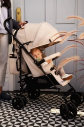 Iščete kompakten voziček z dežnikom, ki obvlada mesto in izlete? Momi Akira navduši z nizko težo, enostavnim upravljanjem in hitrim zlaganjem z enim gibom. Peneasta kolesa EVA so odporna proti defektu, z blokado sprednjih koles pa se zlahka spopadete z neravninami. Zahvaljujoč strešici z okencem imate otroka vedno na očeh.