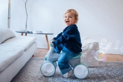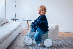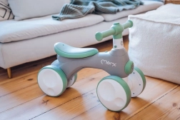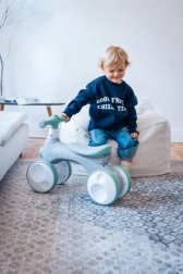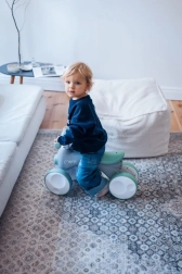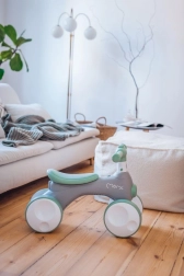 MoMi TOBIS je poganjalec, zasnovan za najmlajše voznike: stabilna štirikolesna zasnova podpira ravnotežje in koordinacijo, medtem ko privlačne funkcije ohranjajo pozornost otrok. Z enim pritiskom na gumb se sprostijo čarobni mehurčki, sprednja luč menja barve, tu pa je tudi hupa za še več zabave.
