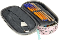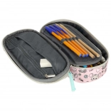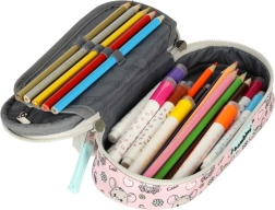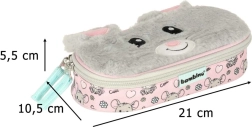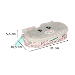 Ljubek šolski peresnik v obliki miške z eno prostorno komoro, notranjim zavihkom in žepom na zadrgo poskrbi, da so vse pisalne potrebščine urejene in na varnem. Mehak kosmat sprednji motiv in tiskana podloga navdušita vsak otroški slog.