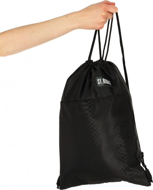 Praktična in elegantna vreča za obutev ali športno opremo znamke ST. RIGHT v prefinjeni črni barvi. Zahvaljujoč lahkemu tekstilnemu materialu in močnemu zategovanju z vrvicami jo lahko preprosto nosite v roki, na rami ali na hrbtu. Idealna za šolo, trening in vsakodnevno uporabo, s kompaktnimi merami 34 × 43 cm za udobno shranjevanje čevljev in drobnarij.