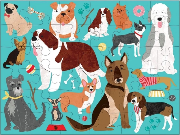 Odkrijte svet psov s sestavljanko, ki otroke ne le zabava, temveč tudi izobražuje. Sestavljanka vsebuje podobe mopsov, jazbečarjev, bernardincev in drugih prikupnih pasjih prijateljev. Vrečka je izdelana iz 100% bombaža z vrvico za zategovanje, kar jo naredi idealno spremljevalko na poti. Ilustracije so delo priznane ustvarjalke Liz Forester, kar je zagotovilo kakovosti in estetike.