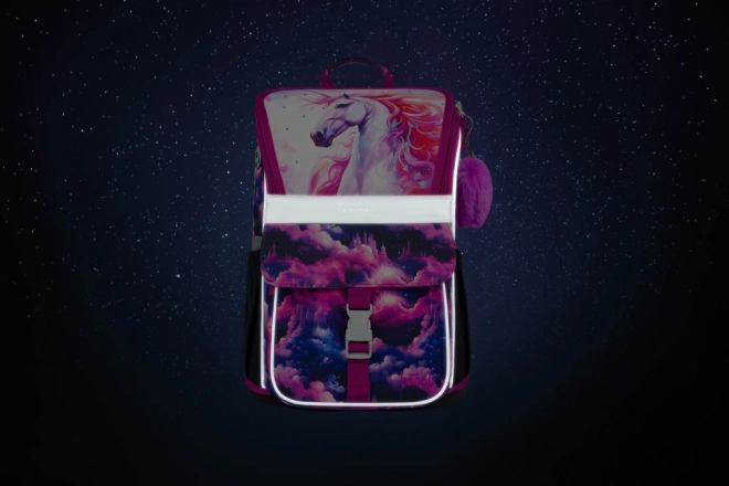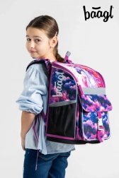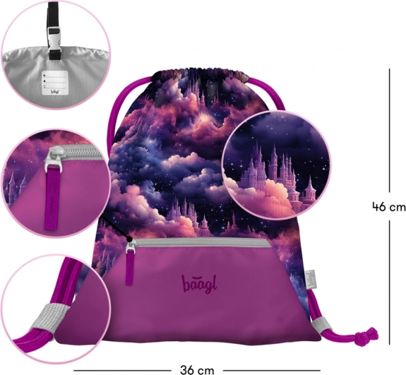 Aktovka, peresnica in vrečka z usklajenim motivom: peresnica s kakovostno zadrgo YKK in vrečka z žepom na zadrgo ter karabinom za pripenjanje.