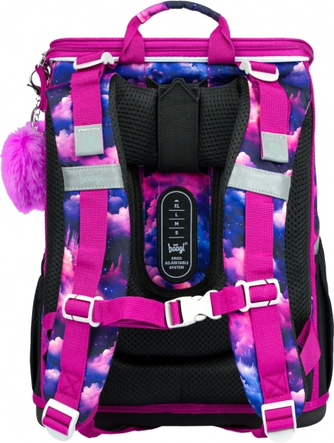 Odkrijte praktičen in stilski šolski set za male šolarje. Ergonomska aktovka z drsnim sistemom ERGO ADJUSTABLE SYSTEM raste z otrokom in zagotavlja zdravo nošenje zahvaljujoč popolnoma nastavljivim ramenskim, prsnim in stranskim kompresijskim trakovom. Lahko in stabilno ohišje drži obliko, izoliran sprednji žep in čvrsti stranski žepi sprejmejo malico in steklenico. Notranji organizator z elastiko pomaga enakomerno razporediti težo, prozoren žep za urnik pa poenostavi šolsko rutino.