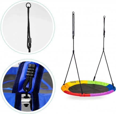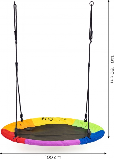 Vrtna gugalnica štorkljino gnezdo bo otrokom zagotovila dolge ure zabave na prostem! Idealna rešitev za domači vrt ali otroško igrišče.Zaradi nastavitve dolžine vrvi je gugalnico mogoče prilagoditi tudi višini najmanjših uporabnikov, kar olajša uporabo.