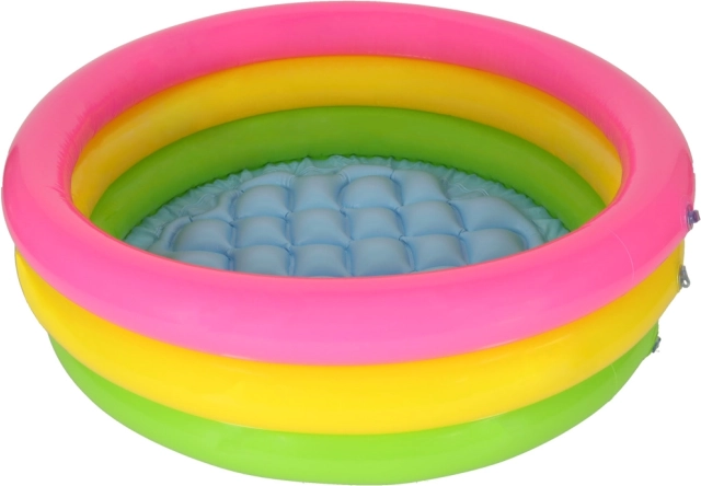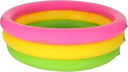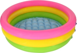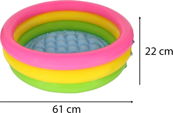 Razveselite otroke z bazenom, ustvarjenim za vroče dni. Kompaktne mere 61 × 22 cm, trije ločeno napihljivi obroči v mavričnih barvah in napihljivo dno za večje udobje naredijo ta model odlično izbiro za najmlajše.