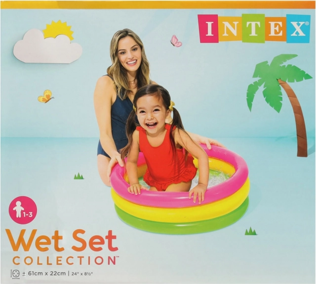 Barvit otroški bazen INTEX s premerom 61 cm je idealen za prve vodne užitke doma in na vrtu. Trije izraziti obroči in mehko napihljivo dno zagotavljajo udobje in varnost, medtem ko žive barve vabijo k igri. Lahek in enostaven za shranjevanje, iz trpežnega PVC, primeren za otroke 1–3 leta.