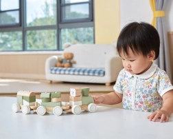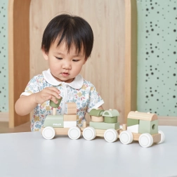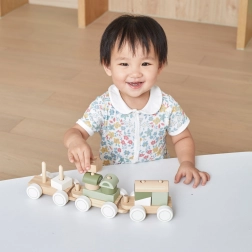 Lesena vlakovna od znamke Polar B je popoln način, kako podpreti otroško ustvarjalnost in spretnosti. Vlakovna vključuje tri povezane vagone in 14 barvnih kock različnih oblik. Otroci lahko sestavljajo in razstavljajo kocke, s čimer krepijo svojo koordinacijo rok in oči.