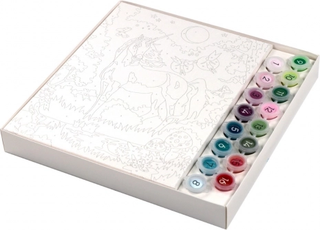 Komplet za slikanje po številkah z motivom samoroga je izvrstna izbira za sproščeno ustvarjanje doma. Zahvaljujoč predtiskanih poljem s številkami vas zanesljivo vodi skozi celoten postopek, vi pa boste uživali v mirni, osredotočeni zabavi z lepim končnim rezultatom.