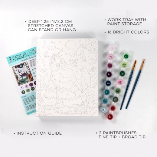 Odkrijte sprostitev in ustvarjalnost s kompletom slikanje po številkah – samorog. Odlično za začetnike in napredne: preprosto nanesite pravo barvo na oštevilčena polja in z lahkoto ustvarite lastno sliko z magičnim motivom samoroga.