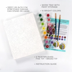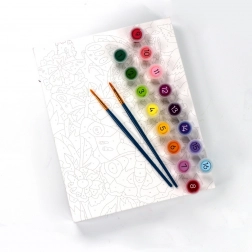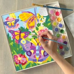 Ta ustvarjalni komplet prinaša preprost in zabaven način, kako si odpočiti ter hkrati polepšati dom. Zahvaljujoč jasno označenim poljem in pregledni predlogi boste imeli slikanje povsem pod nadzorom, rezultat pa vas bo prijetno presenetil – čudovita slika z motivom metuljev.