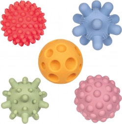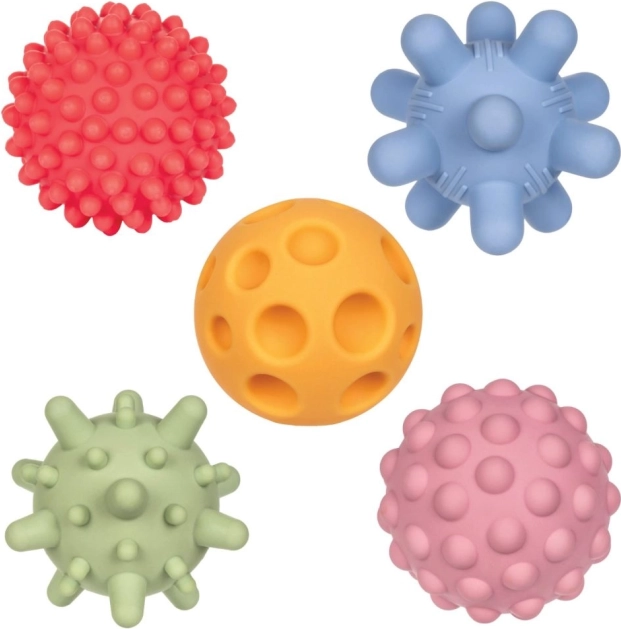 Žogice so vsestranske: odlične za nežno masažo in sprostitev, pri rehabilitaciji roke in prstov, za gibalne igre in tudi za kopanje – so vodoodporne in brez lukenj, zato se ne polnijo z vodo. Pastelne barve naravno pritegnejo pozornost otrok in spodbujajo k raziskovanju.