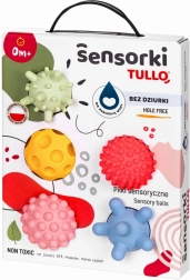 Senzorične žogice TULLO v pastelnih barvah prinašajo otrokom od rojstva bogate tipne dražljaje, raznolike teksture in oblike ter odlično zabavo doma in v vodi. So brez BPA, izdelane iz varnih materialov, enostavne za čiščenje in brez odprtin, zato so idealne tudi za kopanje. Izdelano na Poljskem z poudarkom na kakovosti in varnosti.