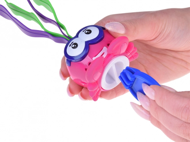 Zabavni rak s svojimi izrazitimi barvami privlači pozornost otrok med igro v vodi.