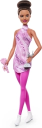 Punčka je oblečena v stilizirano rožnato obleko za umetnostno drsanje, ki je idealna za katerikoli show na ledu.