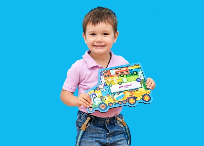 Dimenzija sestavljene sestavljanke je približno 29 × 20,5 cm – ravno prav za otroške roke in domačo igralno mizo. Sestavljanka je odlična izbira za otroke, ki jih zanimajo različna vozila, hkrati pa podpira koordinacijo oko–roka in kognitivni razvoj.