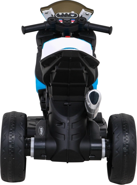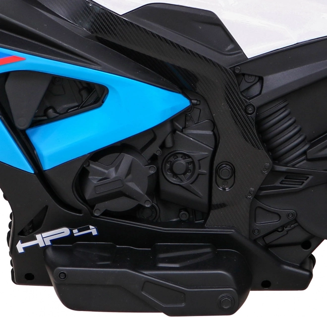 BMW HP4 otroški motor na baterije Moder + 3 kolesa + LED + MP3 USB + eko usnje