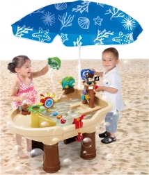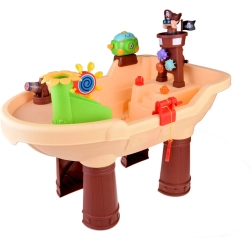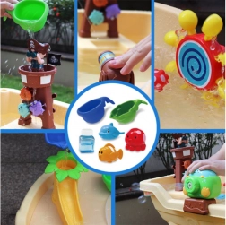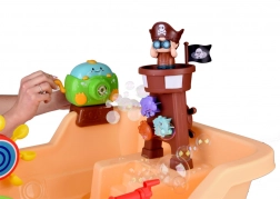 Ta piratska vodna mizica je idealno središče iger na prostem. Otroci lahko izvajajo vodne eksperimente, ustvarjajo mavrične mehurčke, streljajo z vodnim topom in opazujejo, kako voda poganja zobata kolesca in prisrčne živalice. Mizica spodbuja ustvarjalnost, radovednost in koordinacijo oko–roka.