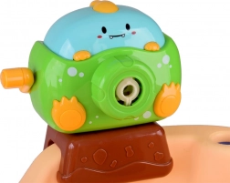 Vgrajena naprava za mehurčke ustvari množico mavričnih mehurčkov in vsako igro spremeni v čaroben spektakel. Odlično za razvoj čutov in fine motorike.