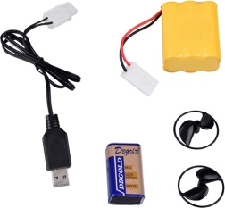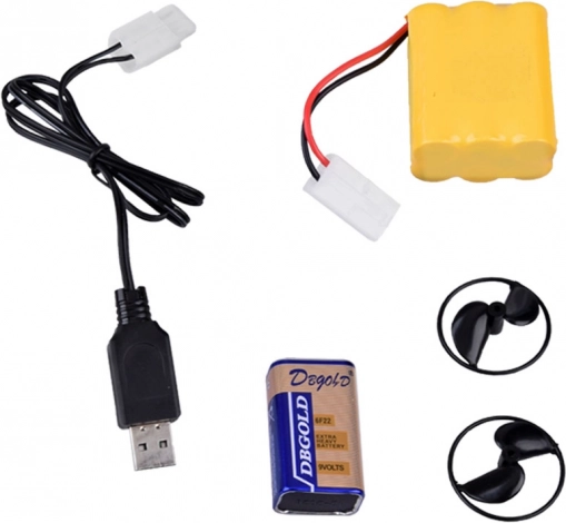 Vključuje akumulator 7,2 V, 9V baterijo za upravljalnik, USB polnilni kabel, rezervne propelerje in praktično stojalo.