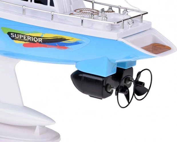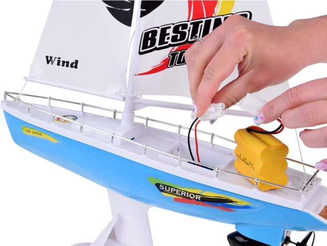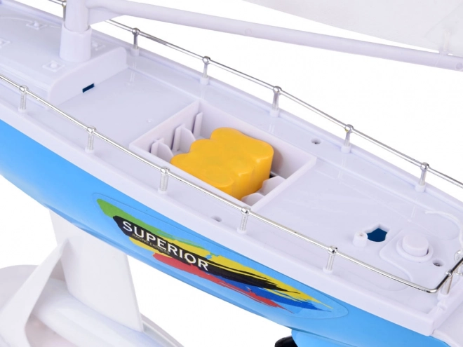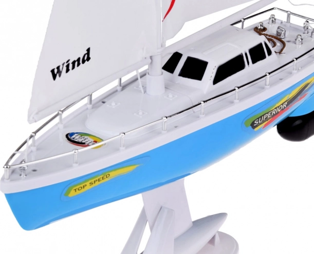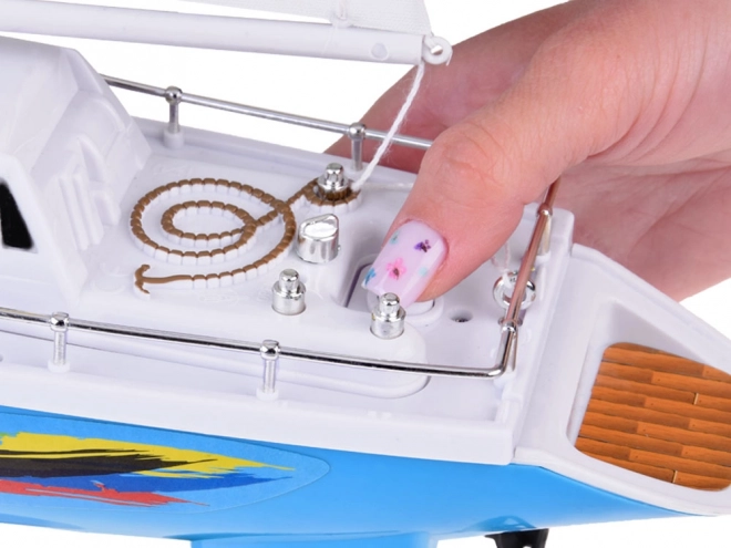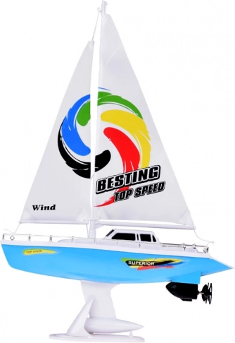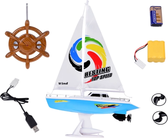 Stilna RC jadrnica v modro-beli barvi z realističnimi jadri prinaša otrokom veliko zabave na vodi. Upravljanje zagotavlja volanski upravljalnik na frekvenci 27 MHz, ne manjkajo dvojni ladijski vijaki, stabilizacijski kobilica, kromirane ograje in stojalo za razstavitev. Del paketa je polnilni akumulator, USB kabel in rezervni propelerji.