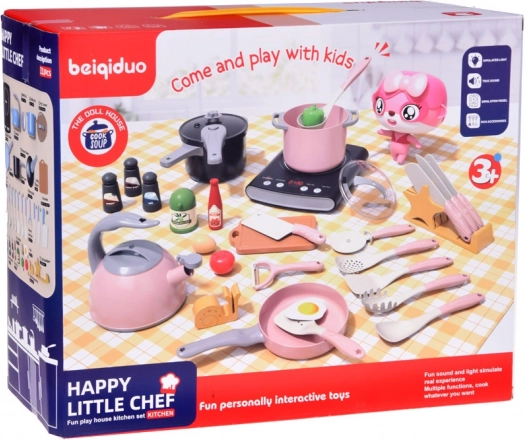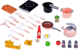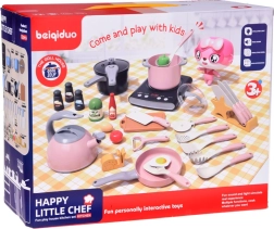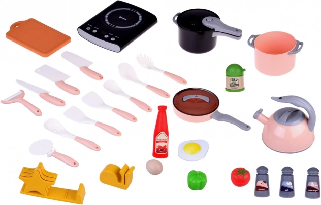Zabavna in varna igra z kuhinjskim setom, ki spodbuja ustvarjalnost in otroke uči o kuhinjskih opravilih.