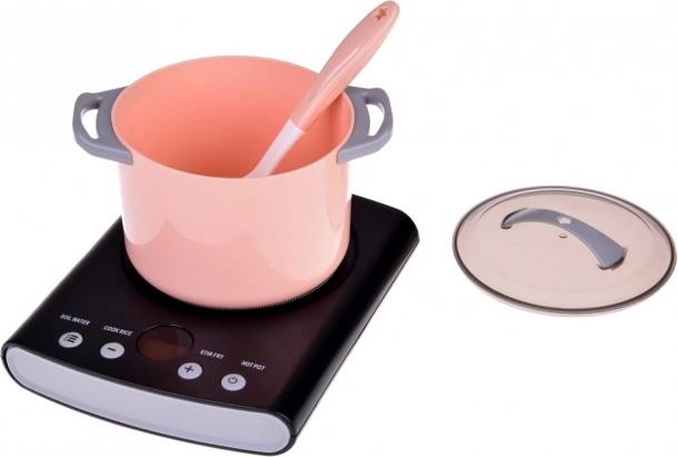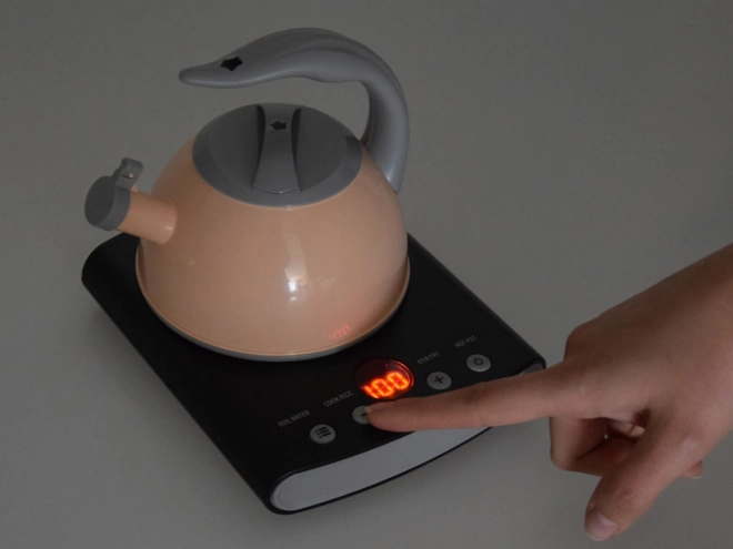 Ob pritisku na gumb se zaslon kuhalnika osvetli, kar otrokom omogoča nastavljanje temperature s pomočjo gumbov. Igro kuhanja spremljajo tudi realistični zvoki, kar celotno doživetje naredi še bolj poglobljeno. Naučite otroke osnov kuhanja in gospodinjskih opravil na najbolj zabaven način!
