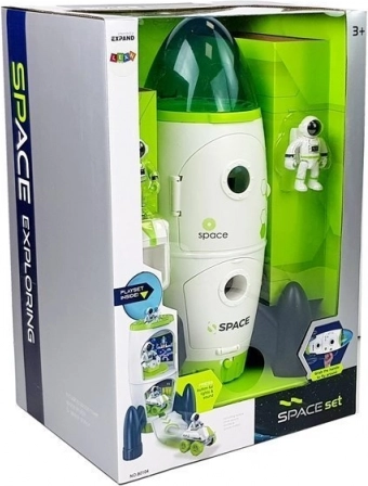 Vsebina paketa vključuje: raketo, mali vesoljski avto, dva astronavta, dva nahrbtnika in kapsulo. Izdelek je izdelan iz kakovostne plastike in je dostavljen v veliki kartonski škatli z vesoljskim motivom. Izpolnjuje certifikat CE za varnost otrok.